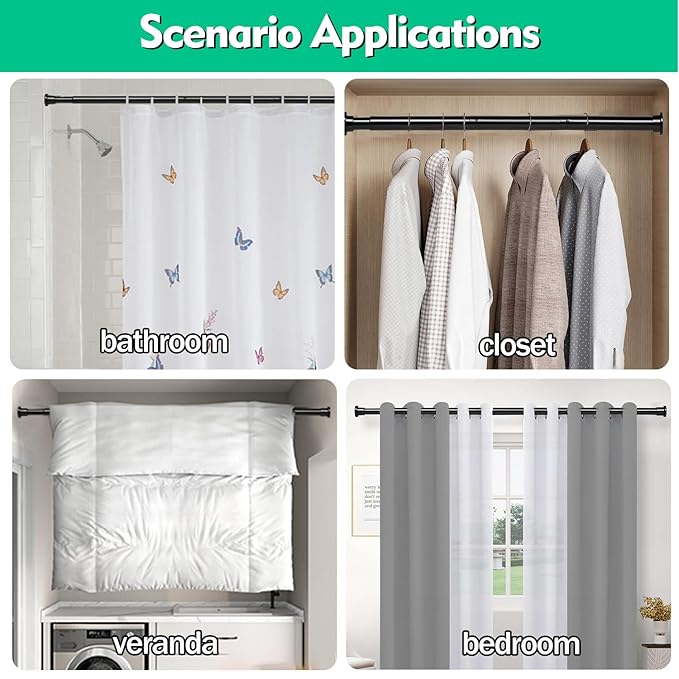 Give full play to your creativity. These drill-free adjustable rods can also be used as curtain rod, closet rod, window lock bar, sliding door security bar, etc.